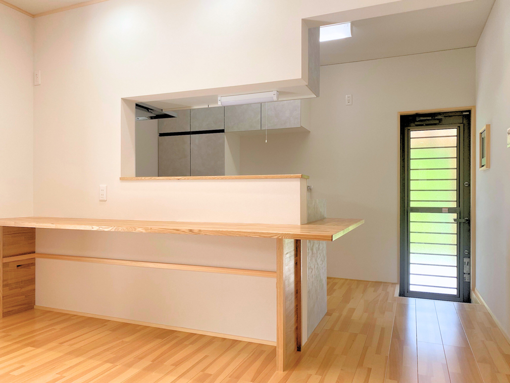 木のカウンターは、できたてのお料理を並べたり、ちょっとした軽食を取ったりするのにちょうど良いサイズ。