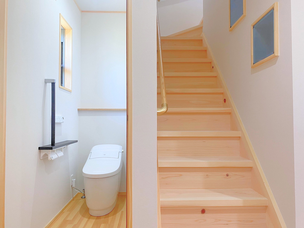 手すりも木製で、小さなお子様やご年配の方にも安心してお使いいただけます。