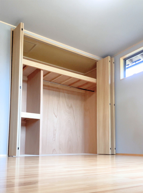 壁一面の大きなクローゼットには、大切な衣類やお気に入りの雑貨もたっぷり収納できます。